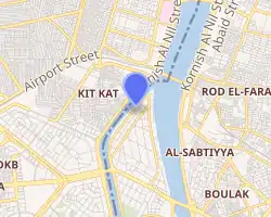 ![]() Gezira Island from the north. Sharia Abou el Feda runs along the shore from the tip of the island (bottom left) to the bridge (mid right). | |