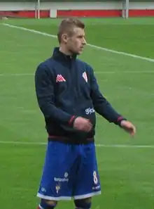 ![]() Barrera warming up for Sporting Gijón in 2014 | |||