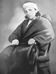 Ásíyih K͟hánum (Persian: آسیه خانم 1820 – 1886) was the wife of Baháʼu'lláh, the founder of the Baháʼí Faith. She is also known by her titles of Navváb, the Most Exalted Leaf, Búyúk K͟hánum or Hadrat-i-K͟hánum. K͟hánum is a title usually given to a Persian lady and is equivalent to madam.[1] Baháʼu'lláh and Ásíyih Khánum were known as the Father of the Poor and the Mother of Consolation for their extraordinary generosity and regard for the impoverished. Baháʼu'lláh, along with Ásíyih Khánum and her children, are regarded as the Baháʼí holy family.