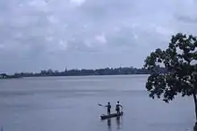 The Ébrié Lagoon is a long narrow lagoon complex located in the south of Ivory Coast. It lies parallel with the coast on an east/west axis and consists of several linked lagoons. At the eastern end it is linked by a channel to the Aghien and Potou Lagoons, into which the Mé River flows. The other major rivers flowing into the lagoon are the Komoé River in the east, the Agnéby River in the centre, and the Ira River in the west. At the western end, Ébrié is linked by the Asagni Canal to the Tagba Lagoon and the Bandama River. It is connected to the Gulf of Guinea by the Vridi Canal, which was opened as a navigable channel in 1950. The natural mouth of the complex is at Grand-Bassam, but this tends to silt up during the dry season. There are several large and many small islands in the lagoon.[1] The cities of Abidjan, Bingerville, Jacqueville, Attécoubé, Tiagba and Dabou lie beside the lagoon and it is crossed by four bridges.[2]