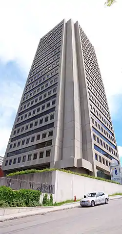 The Édifice Marie-Guyart, previously and still commonly known as Complexe G, is a 31-storey, 132 m (433 ft) office skyscraper completed in 1972 in Quebec City, Quebec, Canada. The brutalist style tower is the tallest building in the city, as well as the tallest building in Canada east of Montreal. Situated in the Parliament Hill borough, the building houses most notably the Ministry of Education, Recreation and Sports, the Ministry of Sustainable Development, Environment and Parks, as well the Observatoire de la Capitale observation deck.
