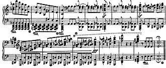 By mid-century the old étude tradition was largely abandoned. Olivier Messiaen's Quatre études de rythme ("Four studies in rhythm", 1949–50) were not didactic compositions, but experiments with scales of durations, as well as with dynamics, figurations, coloration, and pitches. John Cage's études—Études Australes (1974–75) for piano, Études Boreales (1978) for cello and/or piano and Freeman Études (1977–80, 1989–90) for violin—are indeterminate pieces based on star charts, and some of the most difficult works in the repertory. The three books of Études by György Ligeti (1985, 1988–94, 1995) are perhaps closest to the old tradition in that they too concentrate each on a particular technique. Kaikhosru Shapurji Sorabji's 100 Transcendental Studies (1940–44), which take Godowsky and Liszt as their starting point, frequently focus on particular technical elements, as well as various rhythmical difficulties.[1][2] William Bolcom was awarded the Pulitzer Prize for his Twelve New Etudes for Piano in 1988.