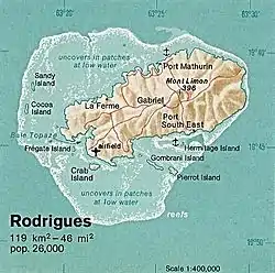 Île aux Cocos (misspelled "Cocoa Island") on map of Rodrigues