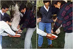 Extraction of lamb blood to be eaten as ñachi.