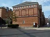 Østerfælled Barracks (Danish: Østerfælled Kaserne), later known as Østerbrogade Kaserne, was a barracks originally built in the 1890s for the Guard Hussars of the Royal Danish Army in the emerging Østerbro district of Copenhagen, Denmark. Its grounds have now been transformed into a mixed-use development surrounding a pedestrian zone and is now known as Østerfælled Torv. Many of the old buildings have been retained while others have been demolished to make way for new residential buildings. The old main entrance to the barracks is located on the corner of Østerbrogade and Gunner Nu Hansens Plads.