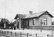 The Herzogenrath to Rheydt section of the Aachen–Mönchengladbach railway was opened on 11 November 1852 and a year later the Aachen-Düsseldorf-Ruhrort Railway Company completed its line between Aachen–Düsseldorf line. At this time Palenberg did not have its own station. The exact year in which the first station was built has no been determined. In the statistics of the year 1861, it is not mentioned, but in 1881 in the Official Journal (referring to special trains during the Great Pilgrimage to Aachen Cathedral) a station at Palenberg is mentioned. During this time a station must have been built on the western outskirts of Palenberg, which was then a small hamlet and was part of the still independent municipality of Frelenberg. In 1912, a siding[6][7] was built for the Carolus Magnus colliery and on the site there is now a commuter parking area, which was built in the 1990s next to the wooden station building. Palenberg and the station became part of the new municipality of Ubach-Palenberg in 1935 and a year later the new station building was built on the eastern side and the station was renamed Ubach-Palenberg. This building was enlarged in 2002 and converted into a youth and seniors centre.[8]