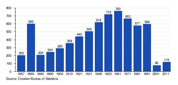 The 1991 census[4] recorded that 93.96% of the village population were ethnic Serbs (560/596), 0.67% were Yugoslavs (4/596), 4.03% were ethnic Croats (24/596), and 1.34% were of other ethnic origin (8/596).