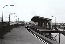 In May 1966, the Yokohama Dreamland Monorail began operations from Ōfuna to Yokohama Dreamland, an amusement park built some 7 km north of the station. However, the monorail stopped running in September 1967 after cracks were found in the guideway.[2]