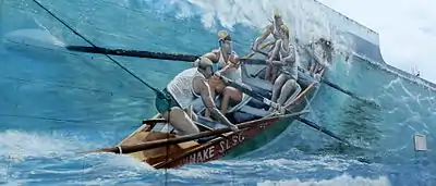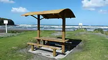 The town was first settled by Europeans in the 1860s, when British army soldiers landed at Ōpunake in April 1865 in the Second Taranaki War.[5] By May, soldiers had constructed the Ōpunake Redoubt, where 350 soldiers were stationed.[5] In May 1867, the redoubt was gifted to Wiremu Kīngi Moki Te Matakātea's people, and the area became a location for flax mills, outside European influence.[5] British soldiers re-established a presence at the redoubt in 1875, and the area became a rallying point for soldiers during the invasion of Parihaka.[5] By circa 1887, the redoubt was abandoned.[5] Ōpunake was intended to be a major port but, other than a jetty constructed in 1891, little else was completed.[6]