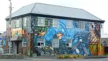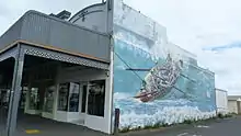 The Ōpunake murals, located on the main road in the town, reflect the town's farming history, Māori culture and modern history.[14]