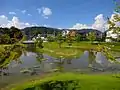It was a base of the Ōuchi clan who were feudal lords and thrived during the Muromachi period to Sengoku period.[2] Its ruins have been protected as In 1556, Ōuchi Yoshinaga built Kōnomine Castle as a supporting castle of Ōuchi-shi Yakata because Ōuchi-shi Yakata was considered unsuitable for withstanding a siege.[4][5] but Mōri Motonari`s army advanced to Suō Province, Ōuchi Yoshinaga left Ōuchi-shi Yakata and Kōnomine Castle without resistance.[6]