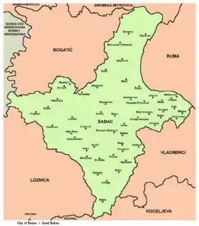 Šabac (Serbian Cyrillic: Шабац, pronounced [ʃâbat͡s]) is a city and the administrative centre of the Mačva District in western Serbia. The traditional centre of the fertile Mačva region, Šabac is located on the right banks of the river Sava. According to the 2011 census, the city proper has population of 53,919, while its administrative area comprises 118,347 inhabitants.