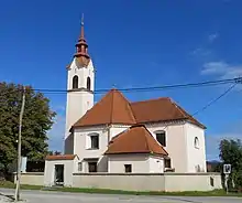 The church in Šmartno ob Savi is dedicated to Saint Martin. It has a Baroque octagonal nave with a chancel and was mentioned in written sources in 1430. The main altar bears the year 1699. The pulpit dates from the second half of the 17th century and the side altars, from the beginning of the 19th century, show Rococo influences. The church was associated with a convent with a large garden; the convent was confiscated in 1945 and converted into housing.[1]