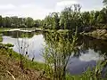 Šventybrastis ('sacred ford', formerly Russian: Свентобросць, Polish: Świętobrość)[1] is a village in Kėdainiai district municipality, in Kaunas County, in central Lithuania. According to the 2011 census, the village has a population of 144 people.[2] The village is located on the left bank of the Nevėžis river, by the Brasta rivulet. There are a wooden church of the Transfiguration of Jesus (built in 1744), a monument for independence, four sacred oak trees (a nature monument),[3] a cemetery, a library. The Šventybrastis Landscape Sanctuary is located nearby, while the Lančiūnava-Šventybrastis Forest is some kilometres away from the village.