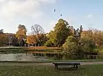 Žvėrynas (literally the menagerie) is one of the older neighborhoods and smallest elderships in Vilnius, Lithuania. According to the 2011 census, 11,079 people live within its 2.6 km² area. It lies on the banks of the Neris River, and is situated to the west of the Lithuanian Parliament building. The river surrounds it from three sides and isolates it from the city. On the other side of the river, to the northwest, lies Vingis Park. Initially, it was a private out of town hunting area until the end of the 19th century, later it was developed as a resort and therefore many decorated wooden houses have survived from these times.[1]