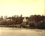 Originally the district belonged to the Grand duke Vytautas the Great, who established forest reserve there, and later to Radziwiłł family, who has built wooden hunting house in the area and maintained wild animals for hunting purposes (hence the name). In 1825, a summer house was built which later became the residence of the Governor General of the Vilna Governorate. At the very end of the 19th century, Žvėrynas became the property of Russian businessman Vasiliy Martinson who in turn sold individual tracts of land to the city's residents. In 1901, the resort town was incorporated into the city of Vilnius. It remained mostly residential with very few industrial enterprises. After Lithuania regained its independence in 1990, Žvėrynas became one of the most prestigious neighborhoods of the capital due to the proximity of Seimas, the number of embassies, Neris river and the Vingis Park. Žvėrynas has a number of government and educational institutions, finance and insurance companies, as well as health care institutions. Žvėrynas is the site of Vilnius' only kenesa. There are also Russian Orthodox Our Lady of the Sign church (1899-1903) near Žvėrynas bridge (1907), Orthodox chapel (1871) near Vingis pedestrian bridge and Catholic church in the Northern part of the district, the later being not finished according to the project because of the World War I (façade towers and dome were never built). Žvėrynas is famous for its well preserved and maintained wooden architecture and interwar brick villas as well as modern architecture. There are more than a hundred wooden summer cottages and city villas, built mostly in 1890s-1910s. Compositors' modernist quarter of 16 villas, designed for leading Lithuanian musicians and a palace for concerts and various events, were built in the 1960s. Prestigious Jewish Sholem Aleichem Gymnasium is situated in Žvėrynas.