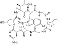 γ-Amanitin (gamma-Amanitin) is a cyclic peptide of eight amino acids. It is an amatoxin, a group of toxins isolated from and found in several members of the mushroom genus Amanita, one being the death cap (Amanita phalloides) as well as the destroying angel, a complex of similar species, principally A. virosa and A. bisporigera. The compound is highly toxic, inhibits RNA polymerase II, disrupts synthesis of mRNA, and can be fatal.[1]