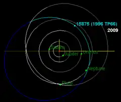 ![]() Orbital diagram with 1996 TP66 being well inside the orbit of Neptune as of 2008 | |