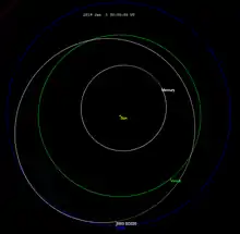 (163899) 2003 SD220 is a sub-kilometer asteroid and tumbling slow rotator, classified as near-Earth object and potentially hazardous asteroid of the Aten group, which orbit the Sun between Venus and Earth. Its orbital period of 0.75 years means that it orbits the sun about 4 times for every 3 of the Earth. It was discovered on 29 September 2003, by astronomers of the Lowell Observatory Near-Earth-Object Search at Anderson Mesa Station near Flagstaff, Arizona.[2]