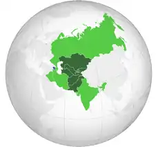 The suffix -stan (Persian: ـستان, romanized: stân after a vowel; estân or istân after a consonant), has the meaning of "a place abounding in"[1] or "a place where anything abounds".[2] The suffix originated in the Persian language but is widely used by other Iranic Languages, Common Turkic Languages (excluding Siberian Turkic), and other languages historically influenced by Persian. It appears in the names of many regions in Iran, Afghanistan, and Central & South Asia, as well as in the Caucasus and Russia.