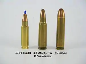 The .22 Spitfire (Originally the Johnson MMJ 5.7mm Spitfire,[1] also known as 5.7mm Johnson or 5.7mm MMJ[2]) is an American wildcat rifle cartridge developed by Melvin Johnson.