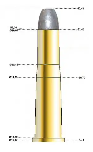 | Bullet diameter | .3775 in (9.59 mm) | |||||||||||