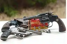 The .38 S&W, also commonly known as .38 S&W Short (it is sometimes referred to as .38 S&W Short to differentiate it from .38 Long Colt and .38 Special), 9×20mmR, .38 Colt NP (New Police), or .38/200, is a revolver cartridge developed by Smith & Wesson in 1877. Versions of the cartridge were the standard revolver cartridges of the British military from 1922 to 1963. Though similar in name, it is not interchangeable with the later .38 Special due to a different case shape and slightly larger bullet diameter.[1]