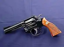 In 1956, the U.S. Air Force adopted the Cartridge, Caliber 38, Ball M41, a military variant of the .38 Special cartridge designed to conform to Hague Convention rules. The original 38 M41 ball cartridge used a 130-grain full-metal-jacketed bullet, and was loaded to an average pressure of only 13,000 pounds per square inch (90 MPa), giving a muzzle velocity of approximately 725 ft/s (221 m/s) from a 4-inch (100 mm) barrel.[18][19] This ammunition was intended to prolong the life of S&W M12 and Colt Aircrewman revolvers equipped with aluminum cylinders and frames, which were prone to stress fractures when fired with standard 38 Special ammunition. By 1961, a slightly revised M41 38 cartridge specification known as the Cartridge, Caliber 38 Ball, Special, M41 had been adopted for U.S. armed forces using 38 Special caliber handguns.[19] The new M41 Special cartridge used a 130-grain FMJ bullet loaded to a maximum allowable pressure of 16,000 pounds per square inch (110 MPa) for a velocity of approximately 950 ft/s (290 m/s) in a solid 6-inch (150 mm) test barrel, and about 750 ft/s (230 m/s) from a 4-inch (100 mm) revolver barrel.[20][21] The M41 ball cartridge was first used in .38 Special revolvers carried by USAF aircrew and Strategic Air Command security police, and by 1961 was in use by the U.S. Army for security police, dog handlers, and other personnel equipped with 38 Special caliber revolvers.[21] A variant of the standard M41 cartridge with a semi-pointed, unjacketed lead bullet was later adopted for CONUS (Continental United States) police and security personnel.[19] At the same time, .38 Special tracer cartridges were reintroduced by the US Navy, Marines, and Air Force to provide a means of emergency signaling by downed aircrew. Tracer cartridges in .38 Special caliber of different colors were issued, generally as part of a standard aircrew survival vest kit.