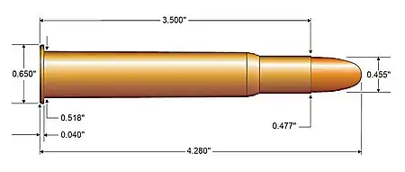 The .450 No 2 Nitro Express is rimmed, bottlenecked, .458-inch (11.6 mm) calibre cartridge designed for use in single-shot and double rifles, it fires a 480-grain (31 g) projectile at over 2,175 feet per second (663 m/s).[3][4]
