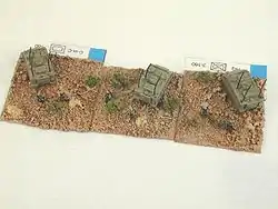 1:285 scale or 6 mm figure size is a US Army scale introduced in the late 1960s, and used for wargames and some scale model dioramas. It is used in miniature wargaming to depict large battles in a relatively small gaming area.[1] 1:300 scale (5 mm scale) is an almost identical NATO standard scale.