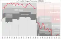 After German reunification in 1990, the club dropped its affiliation with the army and became FC Victoria Frankfurt/Oder. After financial problems and re-organization in 1993 the side emerged as Frankfurter FC Viktoria (FFC Viktoria 91). In the early 1990s, they played a couple of seasons in tier III before slipping to division IV and V level play. The side then played in the Brandenburg-Liga (VI) before, on 1 July 2012, merging with MSV Eintracht Frankfurt to become 1. FC Frankfurt.[8][1] The new club took over Viktoria in the Brandenburg-Liga and was aiming for promotion to the higher leagues. Their first success was winning the league in 2015, earning promotion to the NOFV-Oberliga for the first time in 12 years.