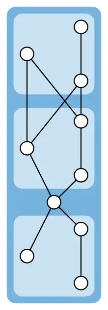 More generally, let P be any series composition of three-element partial orders and of one-element partial orders, such as the one in the figure. Then P forms an extreme case for the 1/3–2/3 conjecture in the sense that, for each pair x, y of elements, one of the two elements occurs earlier than the other in at most 1/3 of the linear extensions of P. Partial orders with this structure are necessarily series-parallel semiorders; they are the only known extreme cases for the conjecture and can be proven to be the only extreme cases with width two.[2]