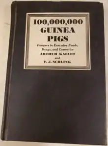 - Kallet, Arthur; Schlink, Frederick John (1933). 100,000,000 Guinea Pigs; Dangers in Everyday Foods, Drugs, and Cosmetics. Vanguard Press.