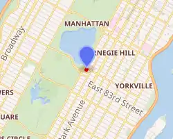 The building is situated on the Upper East Side, in the area of New York City known as Museum Mile. It occupies the block bounded by Madison and Fifth Avenues and 86th and 85th Streets.[1] It is adjacent to and relates architecturally with the former Croyden Hotel, now rental apartments, that shares the remainder of the block to Madison Avenue.[3]