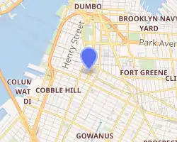 In 2003, the City of New York sold the building to Two Trees Management, a primary developer of the DUMBO neighborhood, for development as luxury residential apartments, as part of development efforts taking place throughout Downtown Brooklyn. Several floors were added to the structure, and the courtyard was decorated with a trompe-l'œil mural of architectural features by muralist Richard Haas.[5] The interior lobby space, including a coffered ceiling, has been restored by the architecture firm Beyer Blinder Belle, and a historic theater space on the ground floor is intended to be used by ISSUE Project Room, a local arts organization.