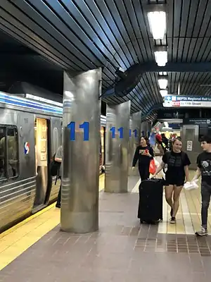 11th Street is one of three stations on the Market–Frankford Line that is not ADA-accessible, the other two being 34th Street and Spring Garden stations.[5] The addition of elevators in the station was announced in SEPTA's 2021-2032 Capital Program proposal; the station platforms would be rehabilitated and made accessible to passengers with disabilities by 2023 at an estimated cost of $9.51 million.[1]