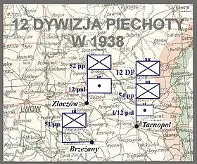 Between the wars, the division was stationed in Tarnopol. It consisted of several regiments, scattered in towns of Podolia: