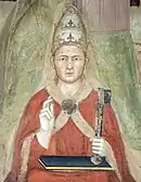 The Sacred College of Cardinals was divided into two factions: pro-French and anti-French ("Bonifacians"). The smaller, pro-French party counted six cardinals under the leadership of cardinals Napoleone Orsini Frangipani and Niccolò Alberti. They looked for the reconciliation with France and Colonna. The larger party, anti-French, led by Cardinal Matteo Orsini Rosso and Francesco Caetani, cardinal-nephew of Boniface VIII, demanded atonement for the outrage committed on the person of Boniface VIII by French Chancellor Nogaret at Anagni, and rejected any concessions towards Philip IV of France. It counted 10 electors.[3] At the beginning of the conclave the cardinals arbitrarily decided to annul the most restrictive rules of the Constitution Ubi periculum about the conclave, which made it possible to prolong the proceedings.[4] During the first months of the conclave both parties voted mainly for their leaders: Matteo Orsini and Napoleone Orsini.[5] But old Matteo Orsini (aged 74) fell ill and couldn't take an active part in the conclave. Lack of effective leadership eventually led to division in the anti-French party. Some of its members, looking for a compromise, proposed archbishop Bertrand de Got of Bordeaux. Napoleone Orsini initially was sceptical about this candidature[6] but finally he had accepted it. His opinion was decisive for the result,[7] because an alliance of pro-French party with the "Bonifacian dissidents" gave exactly the required majority of two thirds. On June 5, 1305, after 11 months of deliberations, Bertrand de Got was elected to the Papacy.