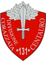 The 131st Armored Division "Centauro" (Italian: 131ª Divisione corazzata "Centauro") was an armored division of the Italian Army during World War II. The division was formed in April 1939 by expanding the I Armored Brigade (Italian: I Brigata Corazzata). The division's name came from the mythological race of half human-half horse creatures named Centaurs. The division participated in the invasion of Albania, Greco-Italian War, and invasion of Yugoslavia. In August 1942 the division was sent to Libya to participate in the Western Desert Campaign. After the Axis defeat at the Second Battle of El Alamein the division retreated with the German-Italian Panzer Army to Tunisia, where the division participated in the Tunisian Campaign. On 18 April 1943 the division was disbanded due to the losses suffered in the Battle of El Guettar.[1]