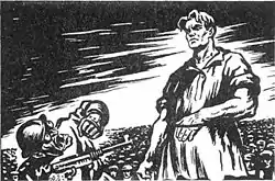 150 000 000 (Russian: Sto pyat'desyat millionov) is a poem by Vladimir Mayakovsky written in 1919–1920 and first published in April 1921 by GIZ (Gosizdat) Publishers, originally anonymously. The poem, hailing the 150-million-strong Russian people's mission in starting the world revolution (represented here as an allegorical battle of Russian Ivan and the American president Woodrow Wilson, the embodiment of the capitalist evil) failed to impress the Soviet revolutionary leader Vladimir Lenin who apparently saw in it little but a pretentious Futuristic experiment.[1][2]