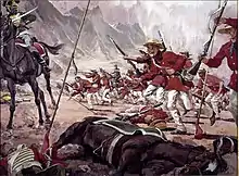 Instead of the standard US Army uniform, the regiment was outfitted in red shirts, white duck trousers, and black slouch hats.[3] The unit was instrumental in winning the Battle of Monterrey, and mustered for service in the Spanish–American War.