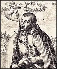 Saint Robert Southwell, S.J., executed this year; illustration from the frontispiece of Saint Peters Complaint, first published this year