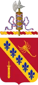 The coat of arms was originally approved for the 168th Field Artillery Battalion on 13 November 1928. It was amended to correct the blazon of the shield on 19 January 1929. It was redesignated for the 168th Field Artillery Regiment on 9 January 1943. The insignia was redesignated for the 168th Field Artillery Battalion on 18 August 1943. It was rescinded/cancelled on 1 September 1961. The insignia was reinstated and redesignated for the 168th Regiment on 24 April 1997. It was amended to correct the blazon of the shield on 17 November 1997.