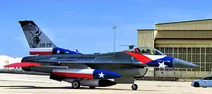 ![]() Squadron F-16 Fighting Falcon returning to Lackland Air Force Base after being painted to honor the 65th anniversary of squadron affiliation with the Texas ANG[note 1] | |