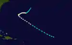This minimal hurricane formed in the mid-Atlantic on August 26. It came close to Bermuda and reached peak windspeeds of nearly 80 knots.[4] The system was picked up by a frontal system on August 30 and recurved east-northeastward, before dissipating on September 4.