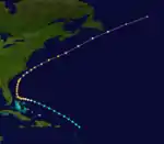 | Peak intensity | 105 mph (165 km/h) (1-min) ≤975 mbar (hPa) |