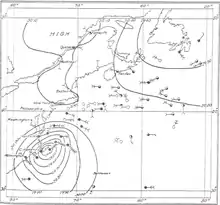 ![]() Surface Weather Analysis of Hurricane San Ciriaco on August 13, 1899. | |