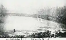 Vanderbilt opened the season at Old Dudley Field against the Middle Tennessee State Normal of Murfreesboro, winning 34–0. The field was at the northeastern corner of the campus, where Wilson Hall, Kissam Quadrangle, and a portion of the Vanderbilt University Law School now stand, adjacent to today's Twenty-First Avenue South.[23] Normal was coached by Alfred B. Miles. Commodore touchdowns were scored by Tot McCullough, Thomas Ryan, Rupert Smith, Percy Conyers, and Alvin Bell. Two extra points were scored by Smith, and one by Bell.[22] During the game, Vanderbilt began using substitutes. The Commodore, Vanderbilt's yearbook, reported on the passing game: "Practically the only thing of note was the aerial efficiency—Kuhn to Ryan and Kuhn to McCullough".[24] Tex Bradford reportedly had to wear street shoes during the game, because Vanderbilt had not yet received cleats large enough to fit him.[14][25]