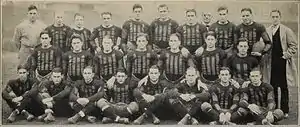 The starting lineup was Wakefield (left end), Rives (left tackle), Coles (left guard), Keene (center), Bryan (right guard), Walker (right tackle), McKibbon (right end), Waller (quarterback), Reese (left halfback), Hendrix (right halfback), Ryan (fullback).[20]