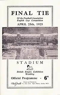 The 1925 FA Cup Final was an association football match contested by Sheffield United and Cardiff City on 25 April 1925 at Wembley Stadium in London, England. The final was the showpiece match of English football's primary cup competition, the Football Association Challenge Cup (FA Cup), organised by the Football Association. Sheffield United won the game with a single goal.